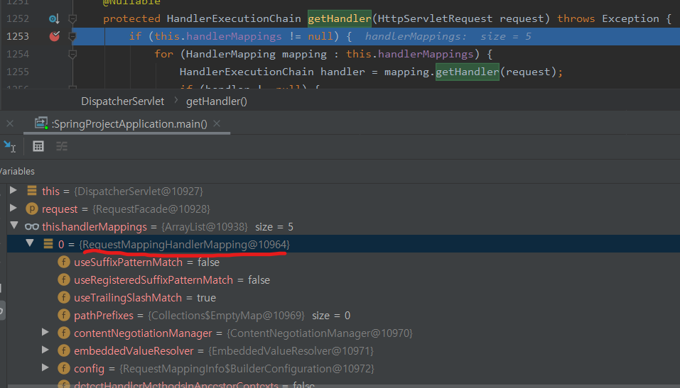 저렇게 해서 mappedHandler에는 그에 맞는 Mapping을 찾아서 넣어준다.