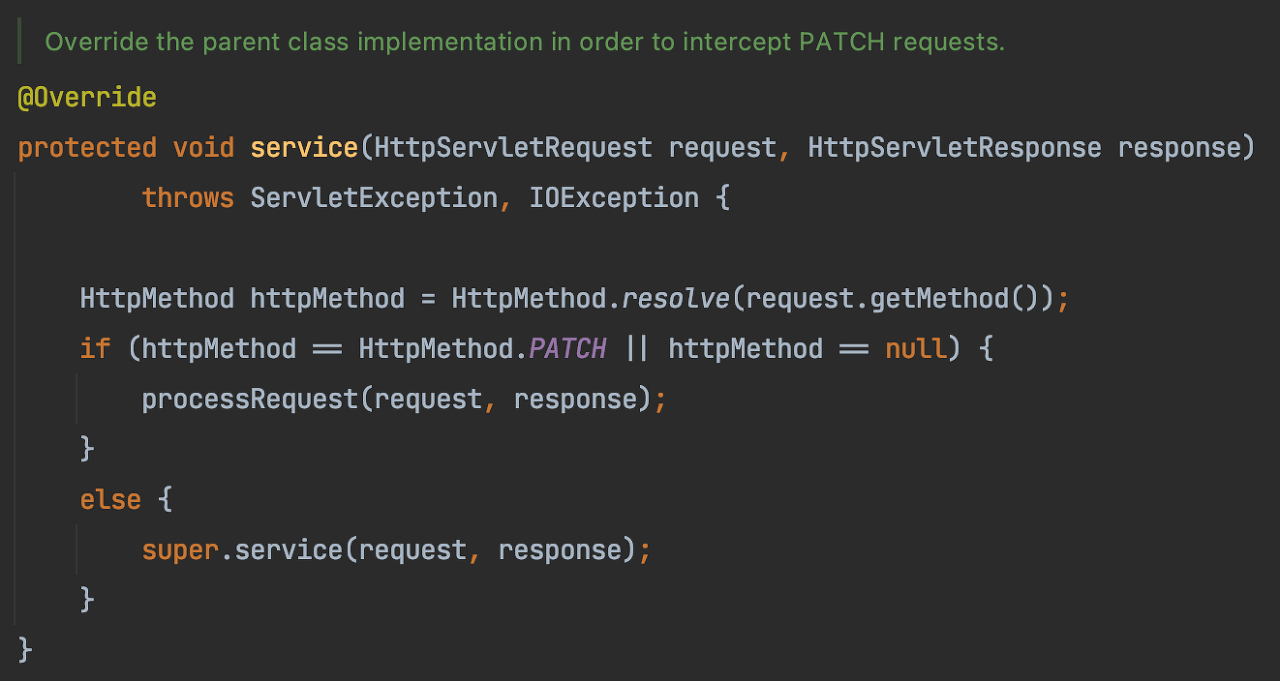 FrameworkServlet에서 service()가 override되어있다.
