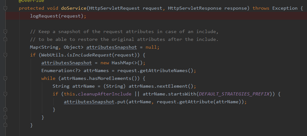 doService()에서 기본적인 request를 설정하다, doDispatch()를 실행한다.