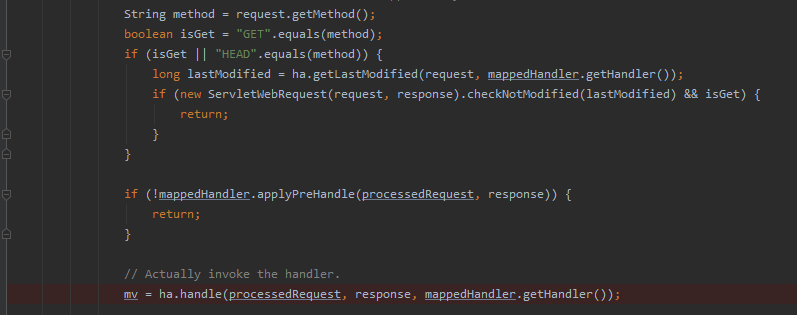 그리고 드디어 가져온 handler를 mv = ha.handle을 통해 요청을 처리한다.