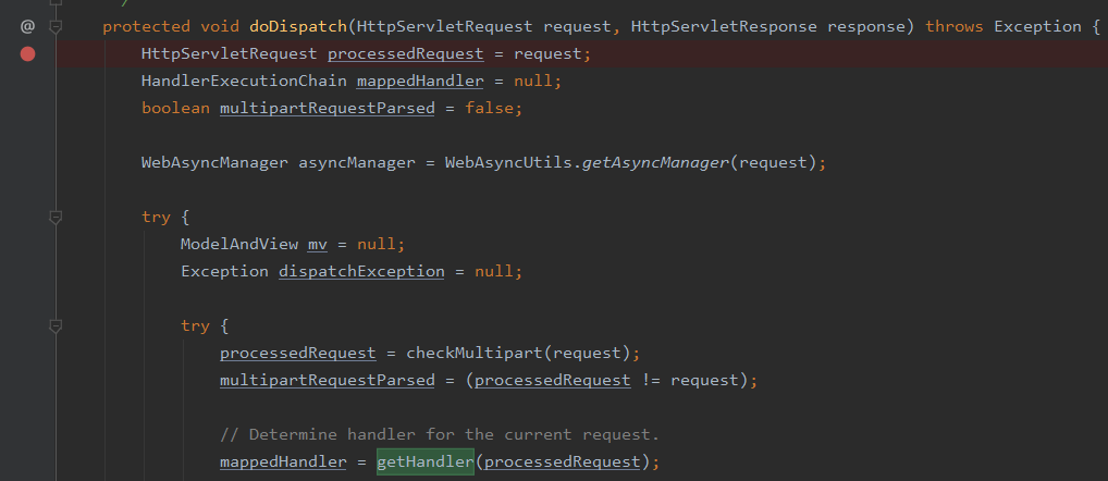 이를 시작으로 DispatcherServlet.doDispatch()가 호출된다 - https://docs.spring.io/spring-framework/docs/current/javadoc-api/org/springframework/web/servlet/DispatcherServlet.html