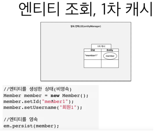 조회를 할 떄도 디비에서 바로 조회하는 것이 아니라, 1차 캐시로 가져온 다음에 그 값을 반환한다.